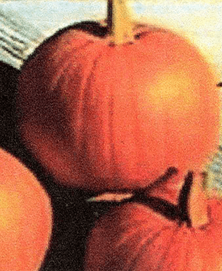 Blocky round pumpkin with slightly russeted deep orange color. Great stem (handles) and good color make this pumpkin a real winner.