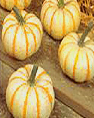 This dazzling orange stripe pumpkin is enhanced by a rich white background. Tiger Stripes produce a unique look that buyers of ornamental pumpkins will stand in line for. These pumpkins have a distinctly flattened shape that feature a slight to medium ribbing emphasized by orange stripes. This pumpkin will add a nice mix to your traditional ornamental holiday arrangements.