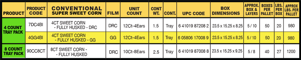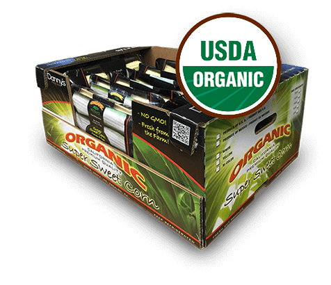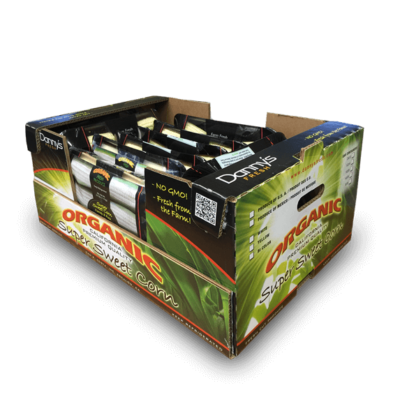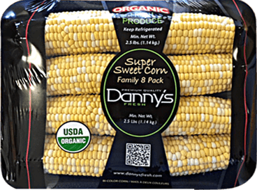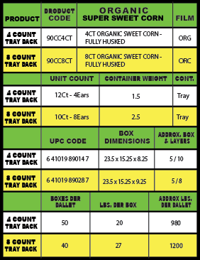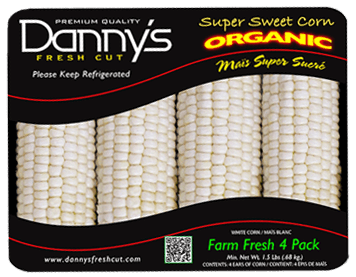 Organic and Conventional Super Sweet Corn is Shipped in ultra Convenient 3 Pack, 4 Pack, 5 Pack, and 8 Pack Family Convenience Trays.